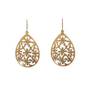 Druppelvormige gehamerde vergulde oorbellen – Rora