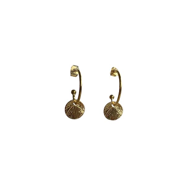 Oorbellen met mat verguld gehamerd muntje – Maro