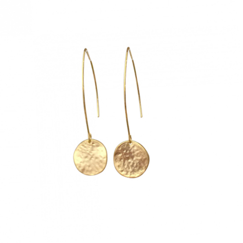 De lange matgouden oorbellen met muntje – Flora hebben een elegante, slanke vorm die subtiel opvalt. De matte goudkleur zorgt voor een rustige, stijlvolle uitstraling. Onderaan de oorbel hangt een klein muntje dat zachtjes meebeweegt. Dit geeft het ontwerp een speelse en vrouwelijke touch.