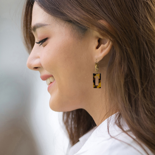 Moderne tortois oorbellen rechthoek – Aline
