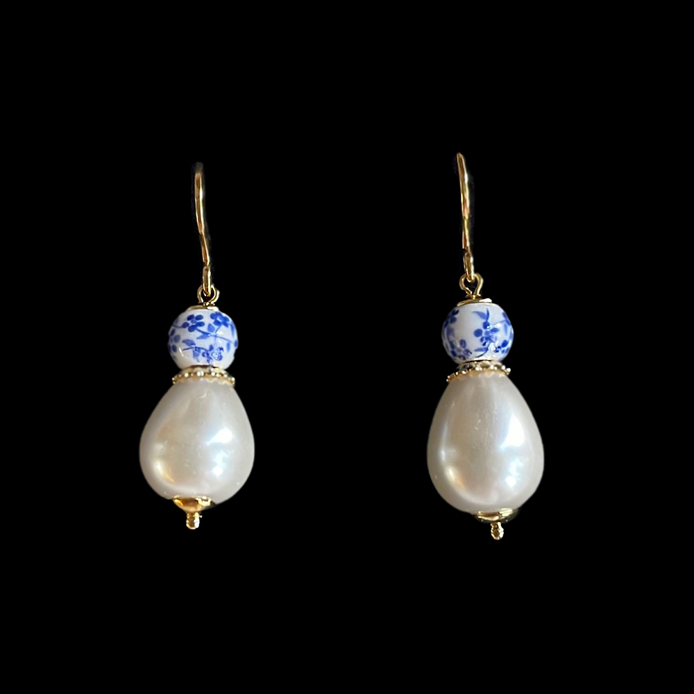 Delftsblauwe oorbellen kleine glasparel – Neeltje | Museumcollectie