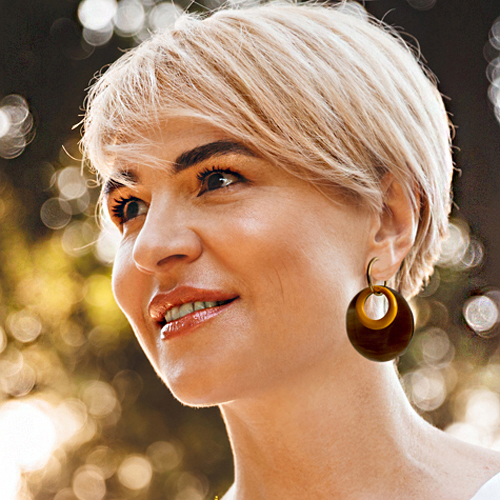 Ronde buffelhoorn oorbellen okergeel – Andrea
